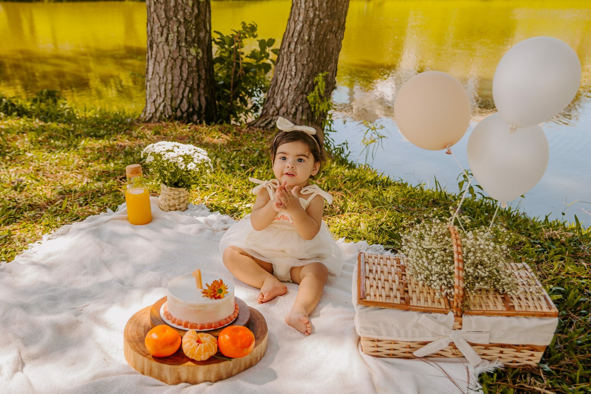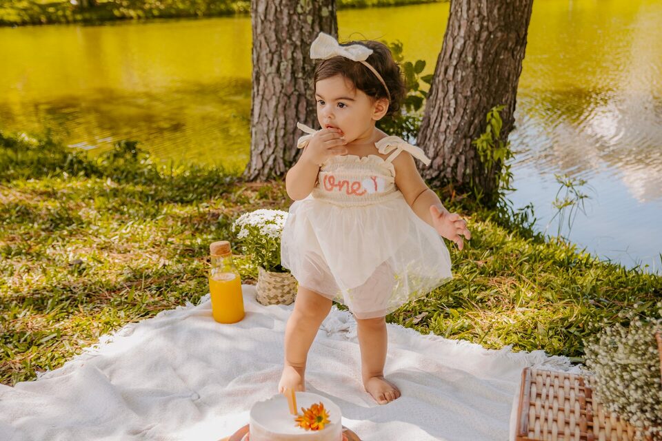 Manuela - Ensaio de 1 Ano Smash The Cake no Lago Pedra Branca em Palhoça, SC